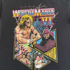 WWE WrestleMania VI T-Shirt Ultimate Warrior Macho Man Black Medium Retro
