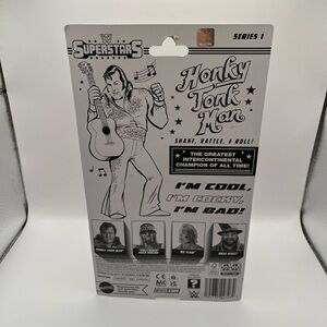 Add this WWE superstars honky-tonk Man, action figure to your wrestling collection today! This action figure his classic entrance jumpsuit and guitar. This figure is still in its original packaging and has never been opened.