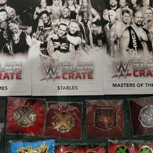 This is all new WWE loot crate items from different loot crates from the past. None of the items have been used and just in storage. They come from an adult, non smoking collector