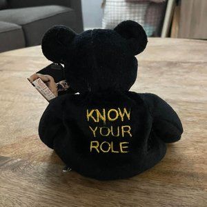 WWF (before they changed their name to WWE) "The Rock" Attitude bear. Pre-owned. Tags still attached. Gold "The Rock" stitched in gold on black chest. Know Your Roll stitched in gold on black back. Tag Says: The Rock's found a new place to dwell. It's down at the end of Jabronie Drive...at the Smack Down Hotel! Release date: July 1999. No rips, tears or stains. Tag has wear around the edges. __________________ O