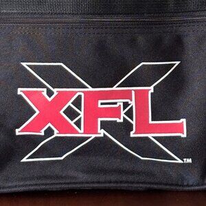 Non-commercial, limited-production item from the World Wrestling Federation, produced as a business tradeshow giveaway/staff item in 2000. Features the XFL program logo on one side and the WWF Racting logo on the other side of the canvas gym bag.