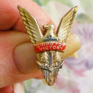 WWII Maritime Commission SHIPS for VICTORY Badge Pin ~ 1940s Eagle Anchor Pin