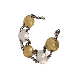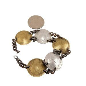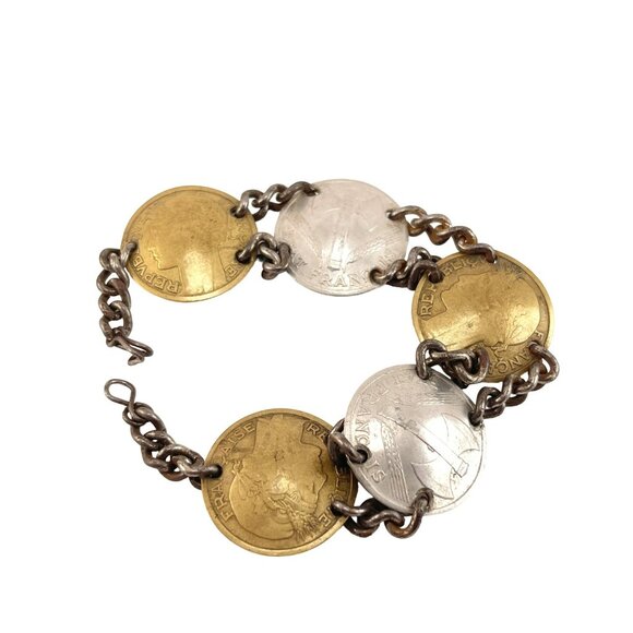 WWII Sweetheart Bracelet French Coin Bracelet With Brass Silver Coins Chain Link