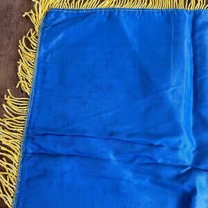 flocked and screen print design with wear from being folded. Back of pillow needs repaired. some areas of discoloration - pictured.