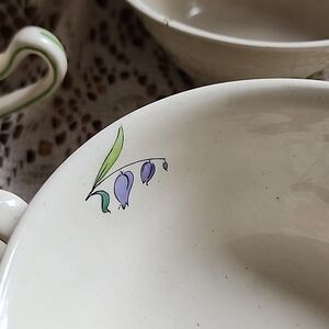 WWII Era Antique Double Handled Floral Cream Soup Bowls