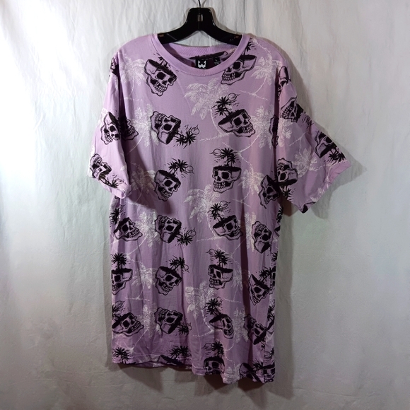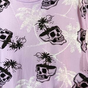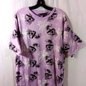 WXYZ Mens Large Graphic T-Shirt Purple Lavender Skulls Palm Tree