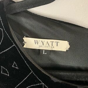 A beautiful velvety dress with an oriental design with sheer sleeves