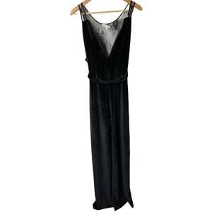 WYLDR Black Velvet Lace Plunge Neck Jumpsuit Size M
