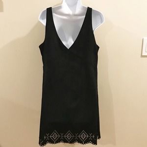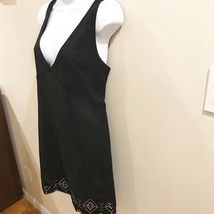 WYLDR Faux Suede Black Dress Size Large - Faux Suede Dress - V-neckline - Lace Design Bottom Hemline - Sleeveless Condition: NWT Materials/Care: Please see images All items come from a smoke and animal free household A6