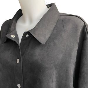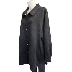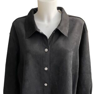 WYNNE LAYERS by MARLAWYNNE Black button front faux suede shacket/ tunic 2XL NEW