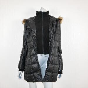 WYTHE New York Women's Down Puffer Jacket Faux fur hooded trim Large