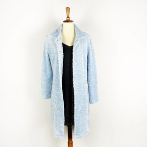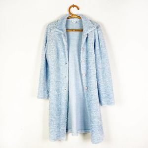 WaWa fuzzy blue knit full length cardigan size Medium