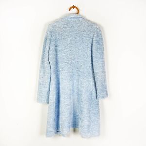 fuzzy blue knit full length cardigan