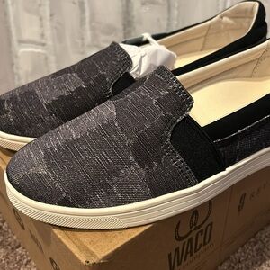 Waco Shoe Company Easton black patchwork slip on loafers NWT