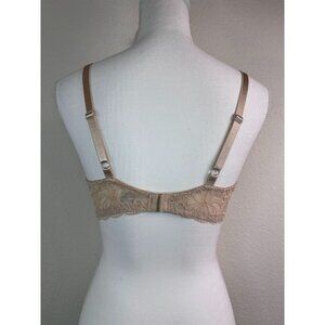 Wacoal brand women's size 36B beige all dressed up t-shirt bra. In excellent pre-owned condition. Lightweight bra has a scalloped lace detail on band. Lightly lined underwire cups for all day comfort.