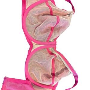 Wacoal 36DD Retro Chic 855186 Pink White Lace Underwire Bra Full figure Coverage curvy busty
