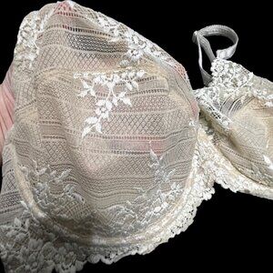 Wacoal 38DD Bra Beige Embrace Lace Underwire 65191 Lace Embroidered Back Close
