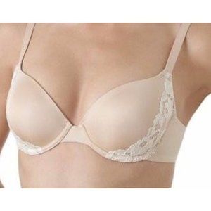 This contour bra features pretty lace trim that lies flat under clothes and hidden elastic in the sides and back for a seamless look.