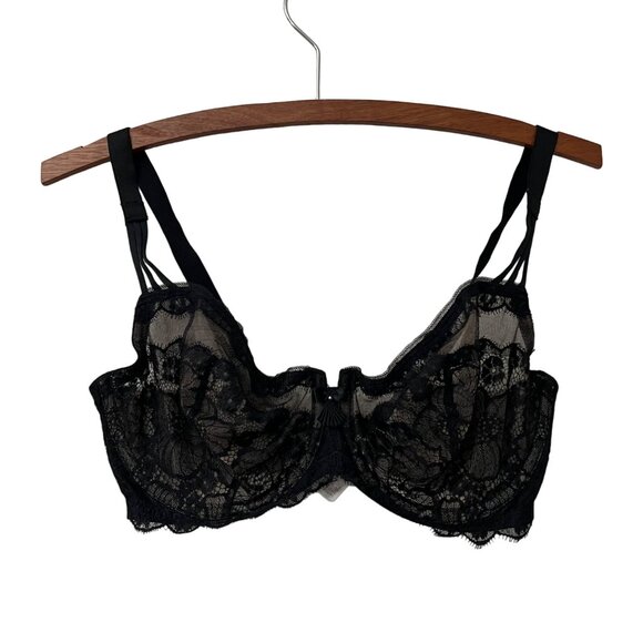 Wacoal Black Nude Sheer Lace Mesh Wired Bra Size 34DD