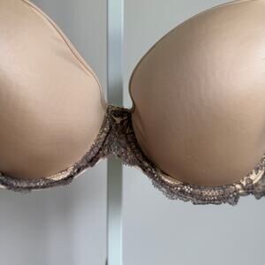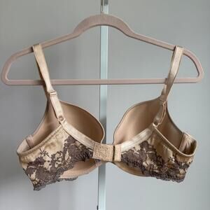 Wacoal, bra, 38D, beige, brown lace, underwire, padded, full coverage, supportive, adjustable straps, hook and eye, everyday bra, contour, molded cups, lingerie, classic, neutral, elegant, stretch lace, comfort fit