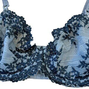 Wacoal Embrace Lace Underwire Bra 34D Blue Floral Design 65191