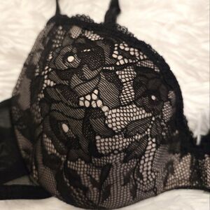 Black lace over nude bra in great condition. The tag is missing but I'm sure it's a 34B Wacoal