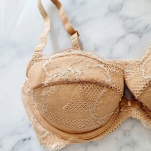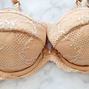 Wacoal Lingerie Vision Padded Push Up Underwire Lace Lingerie Nude Pinup Bra 32D
