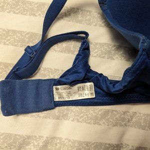 Excellent used condition- these were my go-tos but I changed size post--pregnancy. Double hook in back, and has a hook to convert to racerback. I have several of these and would be happy to see any offers to bundle more than one together. This one is blue with black detailing.