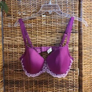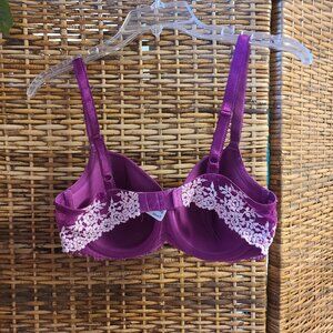 Wacoal Purple White Embrace Lace Contour Lined Shaping Underwire Bra 853191 36C