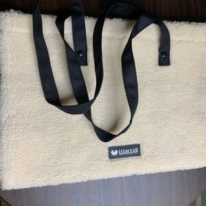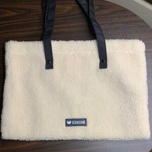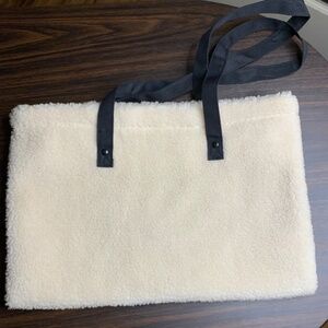 Wacoal Sherpa Teddy Fuzzy Tote Bag in cream, black handles