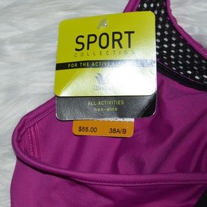 Wacoal bra wireless sport bra for the active collection. 38A/B. . Two-ply front with gentle molding maintains a natural shape and delivers support. Mesh inset on neckline and strap. Adjustable straps.Hook and eye band closure. New with tags.