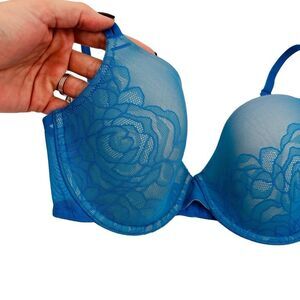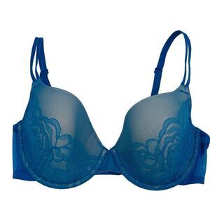 Wacoal Stark Beauty rose contour underwire bra in blue lace overlay size 34D. Excellent preowned condition see photos for detail