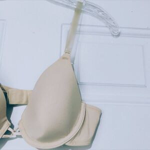 Seamless and smooth silhouette with dainty loops crisscrossing at the cleavage allows for plunging necklines. Thin foam lining is smoothing while underwire supports. The bra comes with 2 see through straps that have a subtle tan hue. Only one is needed to wear the halter bra option from front, around the neck to the other front hook. The other options are crossed front or back either close set or regular width.