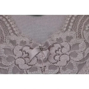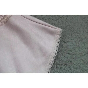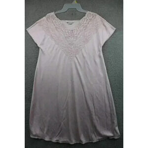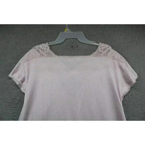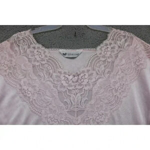This is a very feminine Women's Wacoal Satiny Pajama Gown that is a size Medium. It has a lot of lace in the front with a little bow in the middle with a rhinestone in the center. It is 100% Nylon. In great condition.