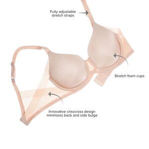Wacoal's Ultimate Side Smoother T-Shirt Bra has an innovative design that gives you a sleek, beautiful silhouette. The criss-cross design helps minimizes side bulge.