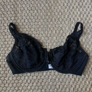 Wacoal Womens Bra 38D BLACK Arabesque 85199 Black Lace UNDERWIRE LACE Semi-Sheer