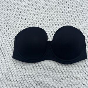 Silicone strip along the top and bottom edge helps hold this strapless underwire bra in place