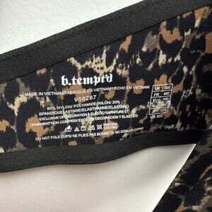 The Wacoal b.tempt'd b.wow'd Push Up Bra in black with a leopard print inner lining is a stylish and functional undergarment designed for women in size 32C. This push up bra features a hook & eye closure, convertible straps, back closure, padding, and adjustable fit for added comfort and support. Made from a blend of nylon and spandex, this underwired bra is perfect for everyday wear or casual activities like walking. The animal print pattern adds a touch of personality to this otherwise classic black bra from the Wacoal brand.