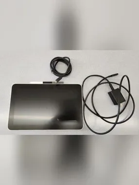 fully functional and lightly used! Back has sticker residue, but will be cleaned before shipping the item! Includes pen and cables. 3-in-1 cable is NOT included as it was not in the original packaging. Perfectly for small work spaces or first time screen tablets!