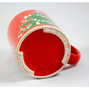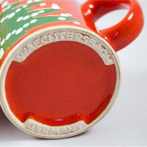 Savor your favorite holiday beverages in the Waechtersbach Germany red Christmas Tree coffee and cocoa mug. This 10 oz. earthenware mug is a festive red with a charming Christmas tree design.