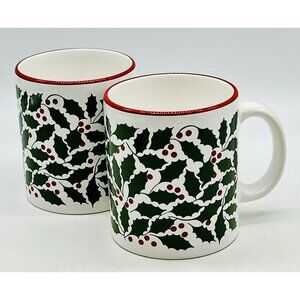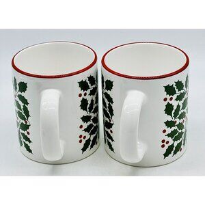 Waechtersbach SPAIN White Christmas Green Holly Red Berries Coffee Mug Lot of 2 Very good condition with no chips or cracks