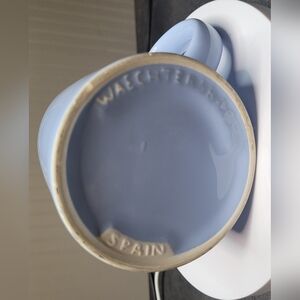 We love Waechtersbach mugs, & the light blue color is amazing. Maybe you're looking to complete your set or as a replacement. This is a newer style of a classic mug from the mid 2000's manufacturered in Spain. Beautiful pre-owned condition, 1 scratch on the bottom & some minor signs of use on the inside. I have done my best to document in the photos & I don't think this takes anything away from the beauty & function of this mug. See pics for measurements & dimensions.