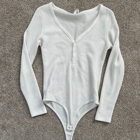 Waffle knit body suit. Long sleeves. V-neck with henley buttons. Lightly worn (maybe 2 or 3 times)