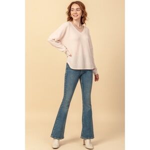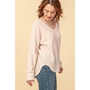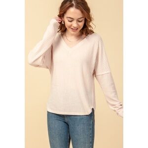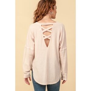 Waffle Knit Cream Drop Shoulder Cross Back Long Sleeve Top