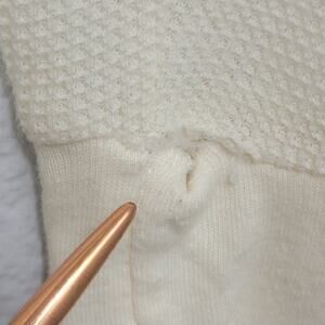 Preowned garment in good condition except a small tear in seam of one of the cuffs (thumb hole poked through)