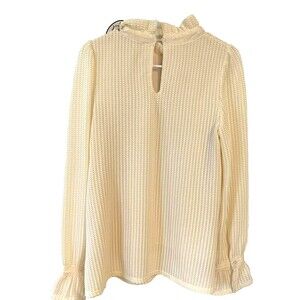 Waffle Knit Mazik Top Ladies Ruffle Neck Cream Knob Fabric Lined Small NWT
