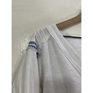 We The Free Womens Y2K Waffle Knit Puff Sleeve Embroidery Boho Artsy Coastal Peasant Top Indie Rustic Cabin Festival White.