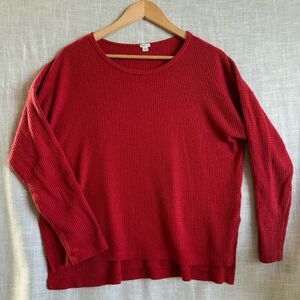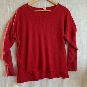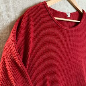 Waffle Knit Thermal Top Womens Size M Cherry Red Long Sleeve Cozy Fall Layers