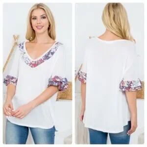 • Details: V-neck, ruffle sleeves, waffle knit.