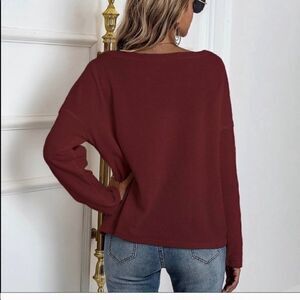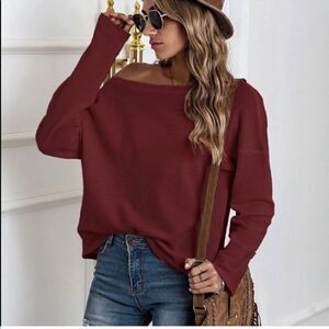 💼📁Beautiful, Burgundy Waffle Weave Jersey Sweater/ Wide Neck- Can be worn off the shoulder. This is so comfortable and casual. Warm but not heavy.